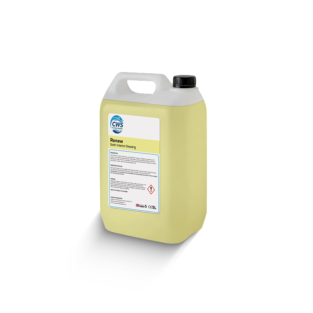 1 x 5L Renew - Dash & Interior, a versatile 2-in-1 solution for interior care. Mild cleaning properties whilst leaving an embellished finish.
